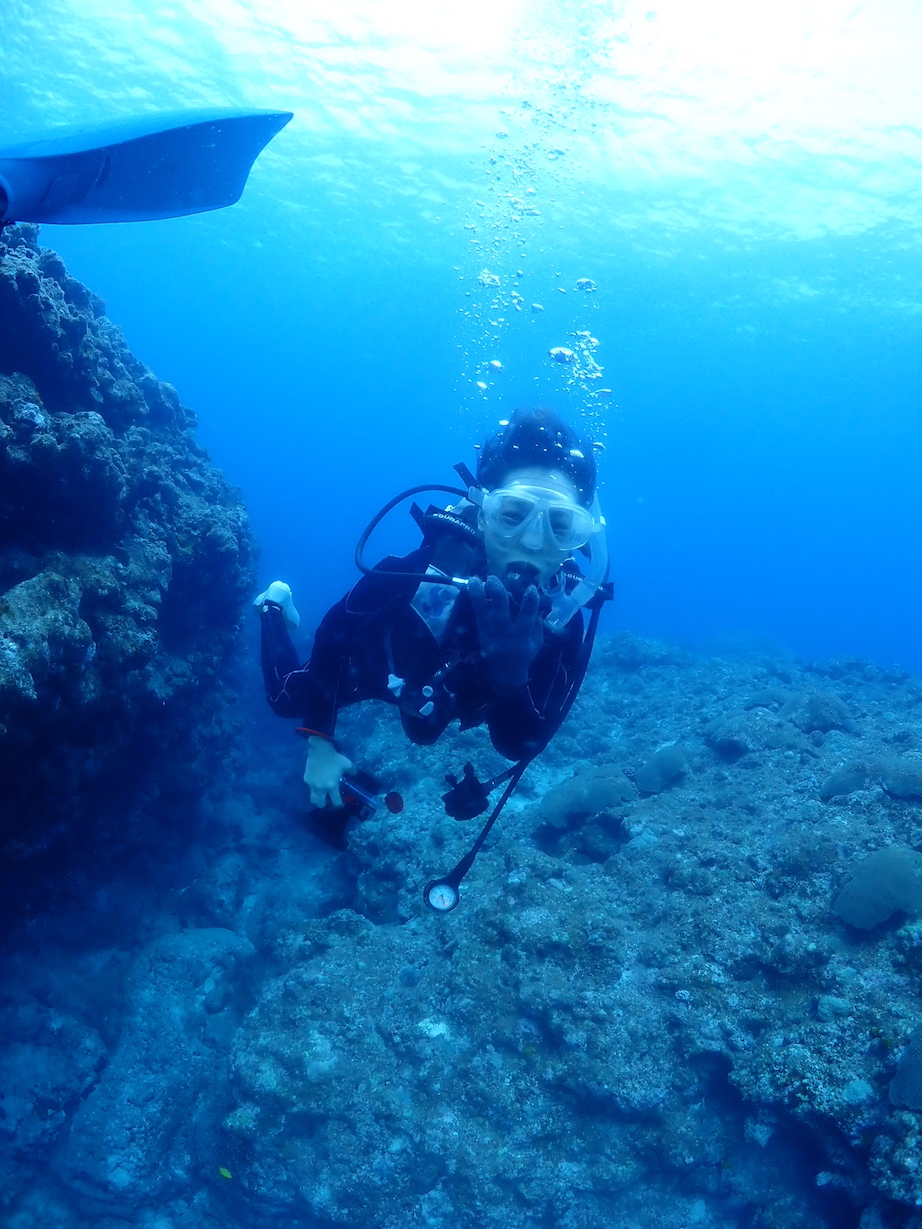 下地島方面の海25 Apr 2018お友達と一緒にダイビング♪ by mpro01461 PV Tweet4月25日(水)曇り時々晴れ 気温23度 水温23度 北東風 波高1.5m 透明度30m 今日のゲストは地元のお友達とそのお友達。 仲間同士で楽しく潜ってきました♪ 1.中の島ホール みんなで並んで記念撮影。 お行儀よく並んでくれました。 2.ミニ通り池 水中で冷えた体の為に暖かいソバを食べて、本日は終了です。お疲れ様でした。 Tweet