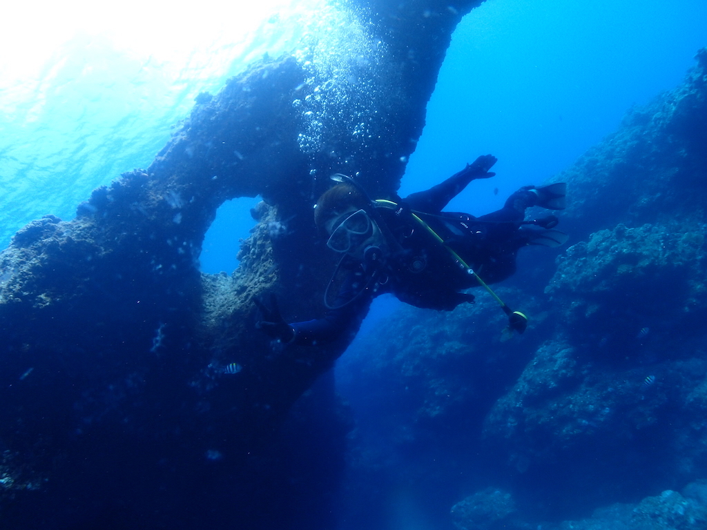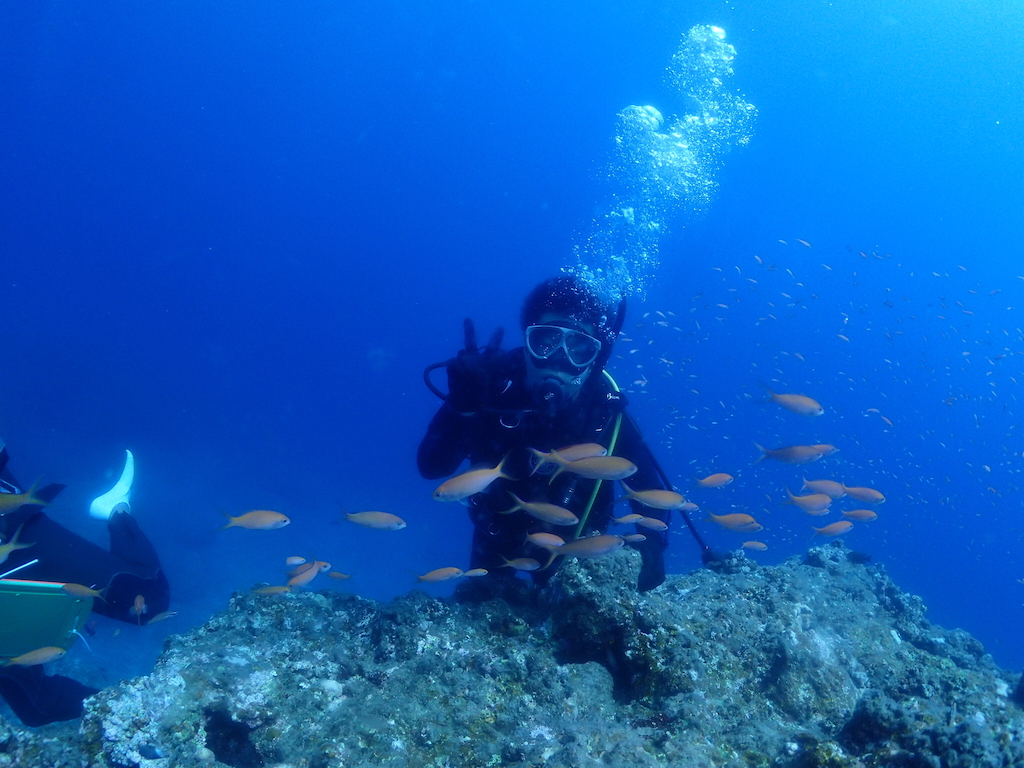 体験ダイビング28 May 2018体験ダイビング2ボート by mpro01733 PV Tweet5月28日(月)晴れ 気温28度 水温25度 南西の風 波高1.5m 透明度25m 1.Wアーチ 2.ハナダイの根 今日のゲストは横浜からお越しのM岡さま。 お一人様旅行で体験ダイビングに参加です。 体験ダイビングの経験が5回もあるM岡さん、 とっても落ち着いて潜られておりました。 まずは海底に降り立ちます。 アーチをくぐったり、、 アカネハナゴイに囲まれてみたり、 太陽光線を浴びるアカククリを眺めたりして、2ダイブ終了です。 次回はきっとライセンス講習かな(笑) Tweet